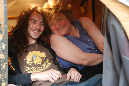 Jesse hanging out with Kate in the teardrop.