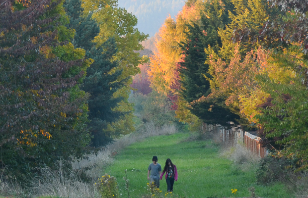 After dropping off Kelly's car, I saw this couple walking through an easement.