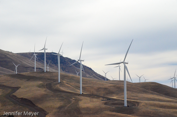 We drove over hills of wind turbines.
