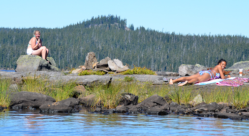 After breakfast, the girls took their coffee out to their little island.
