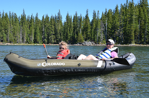 Kathleen and Maddie have a turn in one of the canoes.