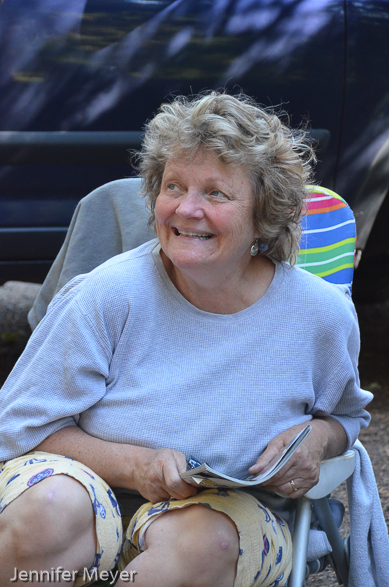Sitting around the morning campfire.