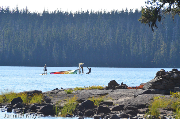 We watched this capsized sailboat struggle for a long time to get upright again.
